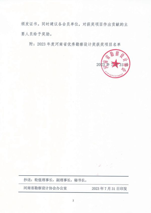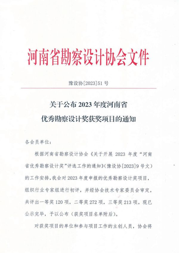 喜報!我公司多個項目榮獲2023年度河南省優(yōu)秀勘察設(shè)計獎