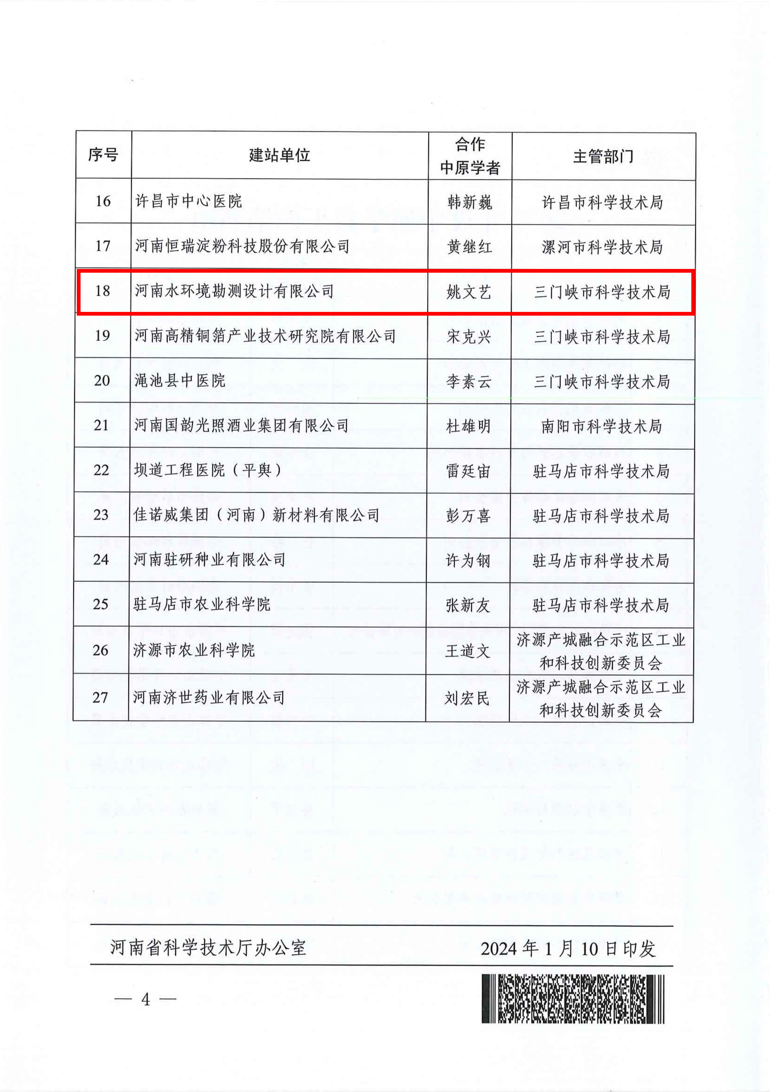 歲末年初,2024年1月10日,又傳喜訊,河南省科技廳公布了2023年度“中原學者工作站”名單,公司名列其中,這是河南省第一個與水土保持和生態修復相關的“中原學者工作站”,此次建站致力于圍繞黃河流域生態保護和高質量發展,突出水土保持和生態修復相關研究。