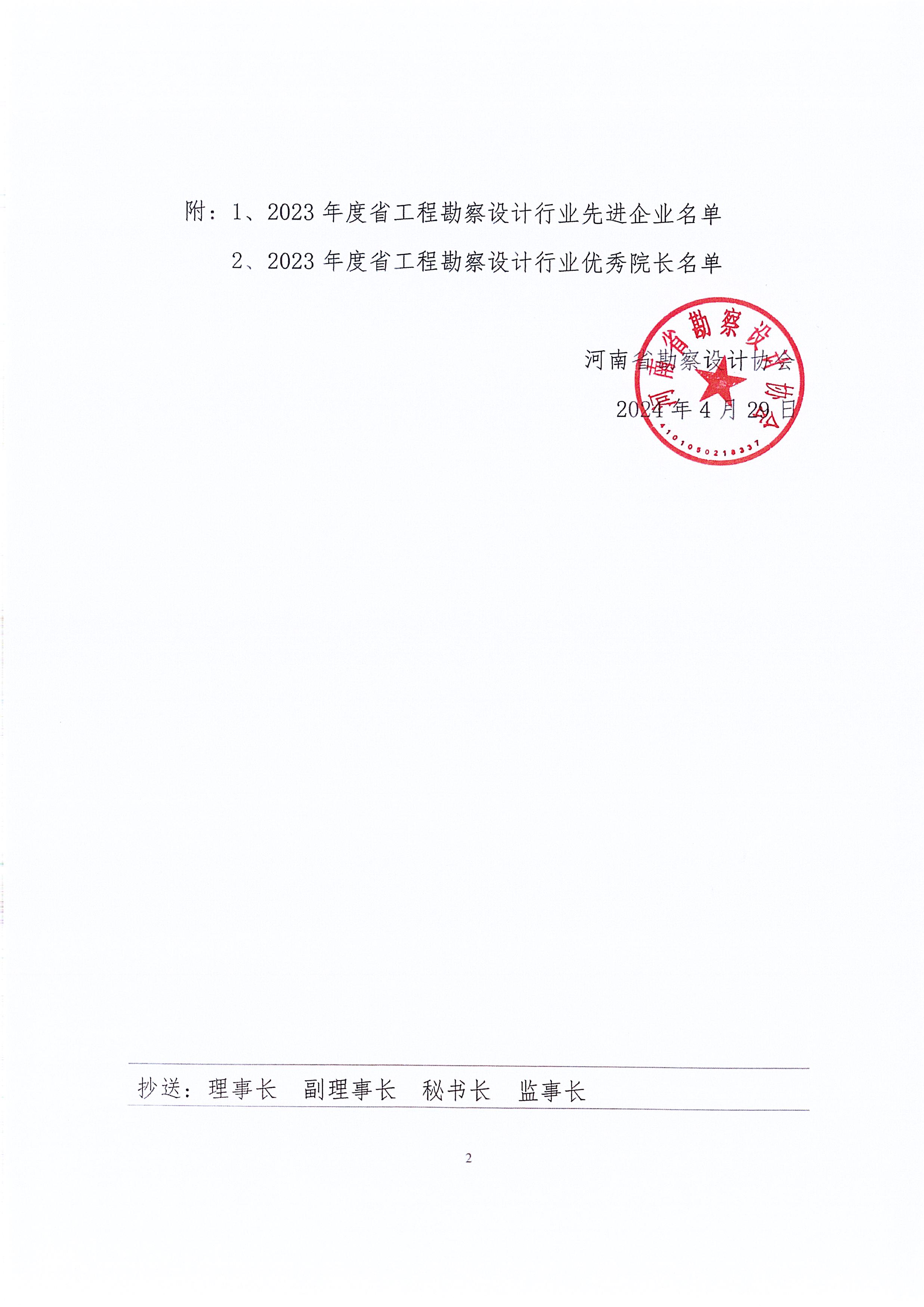4月29日,我公司再添佳績,榮獲2023年度河南省工程勘察設計行業先進企業榮譽;總經理趙宗銳同志榮獲2023年度河南省工程勘察設計行業優秀院長榮譽稱號。