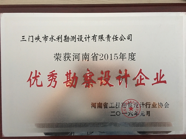 2016年1月30日我公司被授予河南省2015年度優秀勘察設計企業。