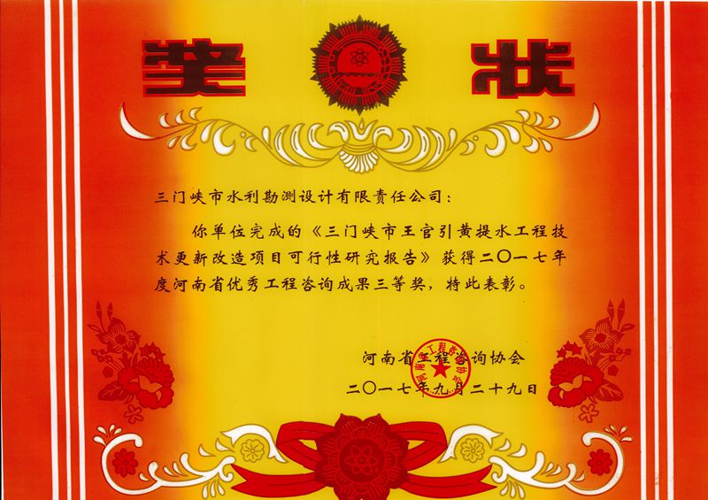 2017年省優秀工程咨詢三等獎